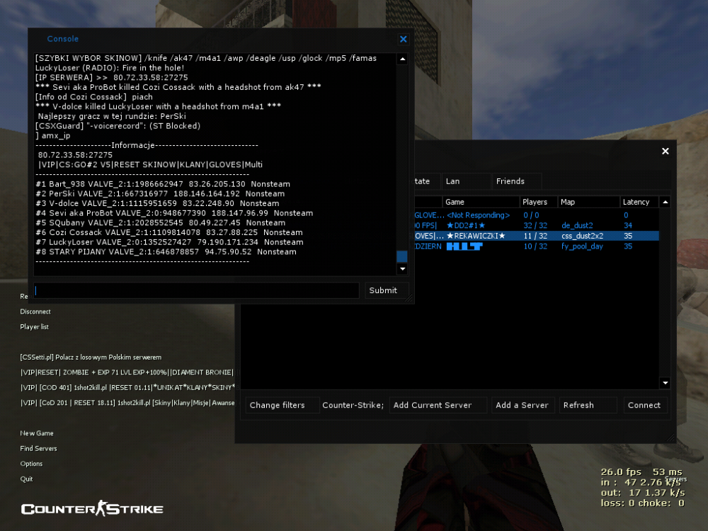 Nick cheat'era: SuperKurczaczek Godzina, data zdarzenia: 20:45 Mapa: Jakiś dust2 Serwer: Cs go mod #2 Link do demka: https://www87.zippyshare.com/v/JHotbVtk/file.html STEAM_ID/IP: VALVE_2:1:802309779 Uzasadnienie: Aim 100% Perełka normalnie już na początku widać1 punkt -