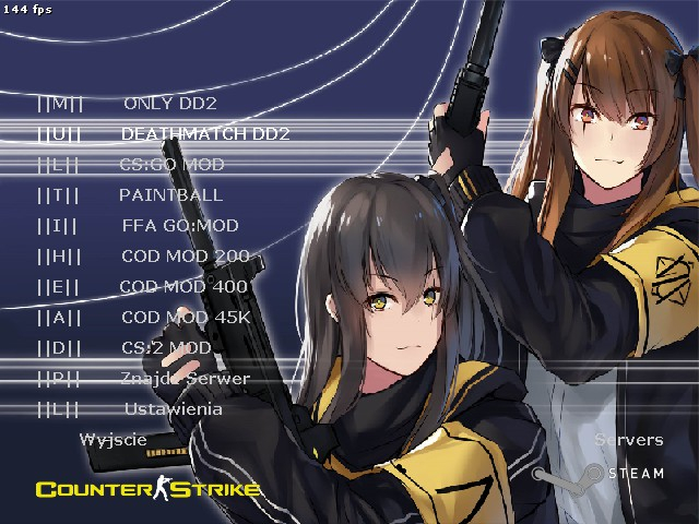 1. Dręczy ciebie, że masz x serwerów w ulubionych i nie możesz znaleźć akurat tych od Multi-Head'a? Dzięki temu gamemenu będzie to o wiele prostsze. Plik GameMenu.res podmieniasz w katalogu "cstrike/resource" ---> GameMenu.res <--- Problemy zgłaszaj w wiadomości prywatnej bądź w tym wątku. Zrzuty ekranu dla "podglądu". Tło nie jest oryginalne dla cs 1.6! wersja 1.2 640x480: 1920x1080: GameMenu.res