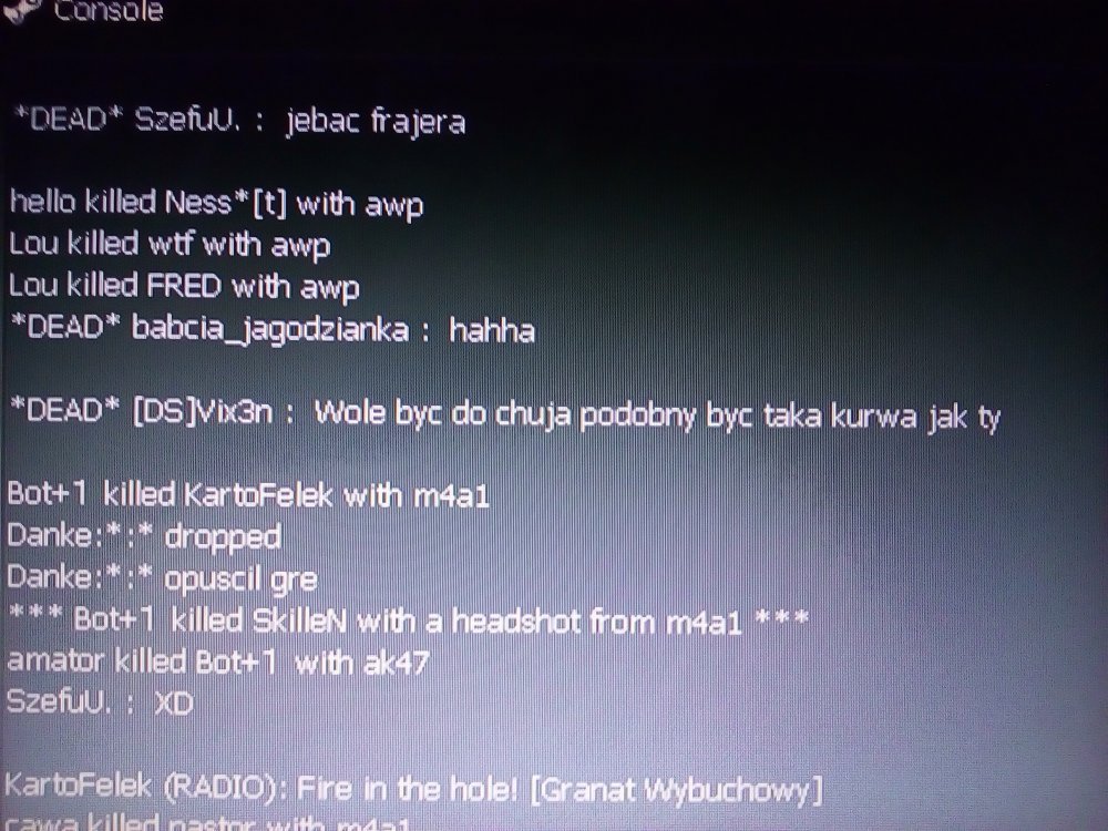 haha nie słyszałes mnie ani razu? to odtwórz sobie demko i ogarnij że gadałem z @zarlacz biały i napisałem to dla smiechu. widac to chociaz by po tym że nie napisałem ,,zgwałce ci rodzine i podpale dom,, tylko na odwrót. i to nie było po to żeby go obrazić bo my zawsze tak do siebie gadamy/piszemy. a nastepnym razem jak cos ci nie pasuje to powiedz a nie z du*y banami rzucasz. możesz zamknac ten temat bo widze ze posada admina nie wpłyneła na ciebie zbyt dobrze, wiec nie mamy o czym gadać.