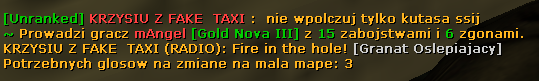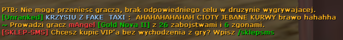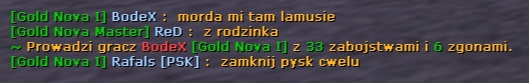 Data zdarzenia: np. 13.06.2020 - pomiędzy 15:30, a 18:30; 14.06.2020 - pomiędzy 14:15, a 17:45; 16.06.2020, pomiędzy 20:45, a 21:10; 20.06.2020 - pomiędzy 19:40, a 19:50; 21.06.2020 - pomiędzy 12:50, a 13:05. Nick gracza: Ciężkie do ustalenia - osoba podszywa się pod różne bardziej znane osoby na serwerze, m.in. Krzysia z fake taxi (pod niego podszywa się chyba najczęściej), Rafał [PSK], Bodexa , Dorcie, Tutkiego i osoby z administracji oraz mnie. Dowody: 71 screenów, które znajdują się w załącznikach poniżej - uciętych, aby nie zajmować zasobów waszego hostingu + 2 przykładowe demka jak Flesh'uje: https://www105.zippyshare.com/v/Tld2jYWx/file.html https://www105.zippyshare.com/v/neCgC0n8/file.html Świadkowie: Krzyś z fake taxi, Paula<3, Rafał [PSK], max.bugs i wiele innych graczy serwera. Uzasadnienie: Osoba, na którą jest to skarga cieszy się już złą sławą na serwerze FFA bardzo długo. Gracz na którego jest skarga: podszywa się pod innych graczy, wyzywa wszystkich od najgorszych, utrudnia grę poprzez rzucanie Flesh'y graczom ze swojego teamu, pisze na chacie pozycje graczy ze swojej drużyny, specjalnie chodzi za graczem tupiąc i w niego strzelając, aby łatwiej go było znaleźć przez przeciwny team, wielokrotnie unika banicji, ponieważ ma zmienne IP, przykłady banów: http://aquax1994.hekko24.pl/bansmh/ban_list.php?bid=10648, http://aquax1994.hekko24.pl/bansmh/ban_list.php?bid=10779, http://aquax1994.hekko24.pl/bansmh/ban_list.php?bid=10564, http://aquax1994.hekko24.pl/bansmh/ban_list.php?bid=10563, http://aquax1994.hekko24.pl/bansmh/ban_list.php?bid=10771, http://aquax1994.hekko24.pl/bansmh/ban_list.php?bid=10765, http://aquax1994.hekko24.pl/bansmh/ban_list.php?bid=10575 Osoba całkowicie niszczy rozgrywkę graczom i robi to często/systematycznie, co powoduje że w czasie jego gry, ilość graczy gwałtownie spada, co może przyczyniać się do zmniejszania "populacji" na serwerze - zmniejszanie liczby stałych graczy. Nie ma wątpliwości, że w tych przypadkach podszywacz jest tą samą osobą, ze względu na ten sam styl pisania oraz dokładnie ten sam sposób utrudniania rozgrywki. Patrząc na wrzucone screeny, można wyrobić sobie zdanie z jakim typem osoby mamy do czynienia oraz dlaczego jest on jednostką nad wyraz szkodliwą dla społeczności serwera oraz patologiczną. Osoba ciągle unika banów, jest banowania jak widać po przykładach w różny sposób, ale jak widać niestety jest to nieskuteczne, ale myślę, że można na to zaradzić poprzez użycie kilku sposób, które poniżej opisze: Banowanie na Steam ID wygenerowane przez Dproto - wymaga włączenia funkcji nadawania SIDu graczom NS w Dproto (Dproto generuje ten adres Hardwarowo), Banowanie na CFG - pluginów w sieci jest mnóstwo. Ostatecznie wgranie pluginu AMX Destroy i utrudnianie nim graczowi dalszej gry. Polega on na tym, że nadpisuje on pliki gracza, przez co niszczy grę - myślę, że po kilku przeinstalowaniach gry powinno mu się znudzić. Link: https://darkgl.pl/2012/08/29/niszczenie-plikow-gracza-czyli-utrudnianie-zycia-cheaterom/ (to nie reklama, jeżeli zostanie za ową uznana, proszę moderatora o usunięcie linku).