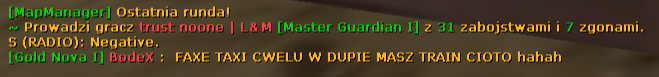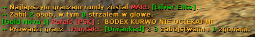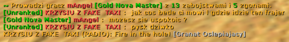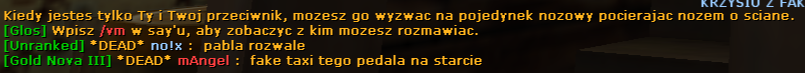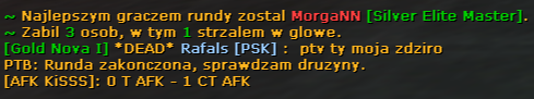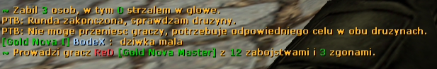 Witajcie! Jako iż jestem nazwijmy to "pozwanym" w tej skardze to pozwólcie że się wypowiem. Obejrzałem to demko, które zostało podesłane w skardze na mnie i spojrzałem na niego chłodnym okiem, próbując doszukać się momentów, które mogły wydawać się podejrzane, bądź dziwne (chociaż nie pobierałem WH, aby móc zobaczyć jak to wyglądało w połączeniu z widokiem przez ściany, bo jednak patrzenie na modele również się do zachowań podejrzanych zalicza, no ale nie chciało mi się ściągać syfu). Jak zostało zauważone przez Squb większość opiera się na czystym słuchu + standardowym sprawdzaniu miejsc, gdzie można stać/skampić się. Co do przedstawionych przez niego akcji to: 7:48 -b - nie muszę komentować 12:24 +/-b - jakbym miał to oceniać to oceniłbym jednak na -b, ze względu na to, że wcześniej było info, że idą gala, a gracz - w tym wypadku ja, spodziewałem się, że oni już weszli, stąd patrzenie najpierw na koniec gali/wejście w bs i powolne przechodzenie w gale, bo nie mogłem być pewny co do tego czy kogoś tam nie ma. Strzał także czysty. 21:31 +b ten ostatni strzał daje do myślenia. - przyznam szczerze - ja bym tutaj również dał +b, bo pomimo tego, że słychać było kroki z środka jakieś 7 sekund wcześniej to strzał wygląda na dziwny. Co ja mogę powiedzieć - sam się śmiałem, że go zabiłem, fart w grze to podstawa Patrząc na opis skargi to powinna to być skarga na Gringo - 230 znaków zajmuje opis jego zachowania, a 220 znaków opis mojego "haxowania", no cóż Ale tak na poważnie, to wydaje mi się, że osoba zgłaszająca nie oglądnęła tego demka, tylko po prostu wrzuciła od niechcenia i oceńcie se. Skoro zgłaszasz cheatera powinieneś przynajmniej pokazać akcje, które są podejrzane - według Ciebie - by też oszczędzić pracy UB Teamowi, który musi pochylić się nad całością. Co do Gringo - nie zgadzam się ze skargą na niego, ponieważ - te - jak to nazwałeś? "Bzdety", pisze rzadko, w celach raczej integracji z graczami, w dodatku jest bardzo aktywny, ponieważ jego najczęściej widzę na serwerze z pośród administracji. Podejrzewam też, że kilka razy siedząc na spec, admin Gringo patrzył właśnie na mnie pod kątem "cheatowania", ale na innych mapach, więc któreś z kolei sprawdzanie mogło wydać się według niego zbędne.