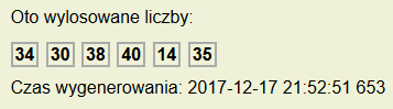 Przed podaniem swoich liczb zapoznaj się z REGULAMINEM! 1. Typujemy 6 liczb z zakresu 1-42 2. Jedna osoba może typować tylko raz w danej odsłonie. 3. Typy należy zgłaszać w postaci posta z wytypowanymi przez was liczbami np. 1,2,3,4,5,6. 4. Nie można zmienić swoich typów ani edytować po napisaniu posta! 5. Losowanie odbywać się będzie zawsze co 3 dni. 6. Aby wziąć udział potrzeba mieć minimum 15 postów (Nie dotyczy rangi Premium). Swoje liczby podajemy do 17.12.2017 do godz 20:00 Zapraszam do zabawy!