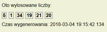 Przed podaniem swoich liczb zapoznaj się z REGULAMINEM! 1. Typujemy 6 liczb z zakresu 1-42 2. Jedna osoba może typować tylko raz w danej odsłonie. 3. Typy należy zgłaszać w postaci posta z wytypowanymi przez was liczbami np. 1,2,3,4,5,6. 4. Nie można zmienić swoich typów ani edytować po napisaniu posta! 5. Losowanie odbywać się będzie zawsze co 3 dni. 6. Aby wziąć udział potrzeba mieć minimum 15 postów (Nie dotyczy rangi Premium). Swoje liczby podajemy do 03.03.2018 do godz 20:00 Zapraszam do zabawy!