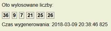 Przed podaniem swoich liczb zapoznaj się z REGULAMINEM! 1. Typujemy 6 liczb z zakresu 1-42 2. Jedna osoba może typować tylko raz w danej odsłonie. 3. Typy należy zgłaszać w postaci posta z wytypowanymi przez was liczbami np. 1,2,3,4,5,6. 4. Nie można zmienić swoich typów ani edytować po napisaniu posta! 5. Losowanie odbywać się będzie zawsze co 3 dni. 6. Aby wziąć udział potrzeba mieć minimum 15 postów (Nie dotyczy rangi Premium). Swoje liczby podajemy do 07.03.2018 do godz 20:00 Zapraszam do zabawy!