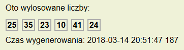 Przed podaniem swoich liczb zapoznaj się z REGULAMINEM! 1. Typujemy 6 liczb z zakresu 1-42 2. Jedna osoba może typować tylko raz w danej odsłonie. 3. Typy należy zgłaszać w postaci posta z wytypowanymi przez was liczbami np. 1,2,3,4,5,6. 4. Nie można zmienić swoich typów ani edytować po napisaniu posta! 5. Losowanie odbywać się będzie zawsze co 3 dni. 6. Aby wziąć udział potrzeba mieć minimum 15 postów (Nie dotyczy rangi Premium). Swoje liczby podajemy do 12.03.2018 do godz 20:00 Zapraszam do zabawy!