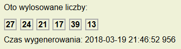 Przed podaniem swoich liczb zapoznaj się z REGULAMINEM! 1. Typujemy 6 liczb z zakresu 1-42 2. Jedna osoba może typować tylko raz w danej odsłonie. 3. Typy należy zgłaszać w postaci posta z wytypowanymi przez was liczbami np. 1,2,3,4,5,6. 4. Nie można zmienić swoich typów ani edytować po napisaniu posta! 5. Losowanie odbywać się będzie zawsze co 3 dni. 6. Aby wziąć udział potrzeba mieć minimum 15 postów (Nie dotyczy rangi Premium). Swoje liczby podajemy do 17.03.2018 do godz 20:00 Zapraszam do zabawy!