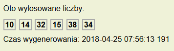 Przed podaniem swoich liczb zapoznaj się z REGULAMINEM! 1. Typujemy 6 liczb z zakresu 1-42 2. Jedna osoba może typować tylko raz w danej odsłonie. 3. Typy należy zgłaszać w postaci posta z wytypowanymi przez was liczbami np. 1,2,3,4,5,6. 4. Nie można zmienić swoich typów ani edytować po napisaniu posta! 5. Losowanie odbywać się będzie zawsze co 3-5 dni. (zależnie od liczby uczestników) 6. Aby wziąć udział potrzeba mieć minimum 15 postów (Nie dotyczy rangi Premium). Swoje liczby podajemy do 22.04.2018 do godz 20:00 Zapraszam do zabawy!