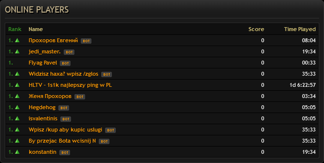 Witam, przychodzę z propozycją dodania większej ilości botów na serwer, w ostatnim tygodniu za dużo graczy nie gra - zależy to również od godziny no ale niestety ... Sam chciałbym sobie pograć, wbić troche lvl ale wiadomo grać w 9/10 osób (łącznie z botami) to nie frajda. Jeżeli byłaby możliwość utrzymania stałej liczby około 12 graczy (bez hltv i tych co na spect siedzą) byłoby o wiele "fajniej". Bot może również wychodzić gdy gracz wbija na serwer więc to raczej nie jest problem. Proszę o komentarz co inni sądzą o tym temacie.