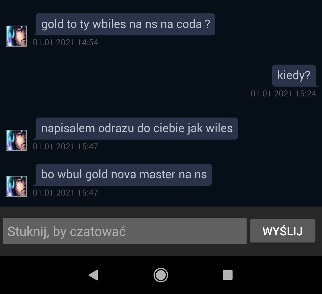 Nick cheat'era: [IP] 7: 'kubaz1' (TERRORIST) -- 31.135.207.41:27005 [VALVE_2:1:510009521Godzina, data zdarzenia: 2020-02-10 09:00Mapa: de_dust2x2Serwer: cod 400Link do demka: https://www68.zippyshare.com/v/9nFyxaO8/file.htmlSTEAM_ID/IP: Wszystko w nicku jest podane Uzasadnienie: Proszę o sprawdzenie tego gracza czy czasami nie gra na odpale , bo ładował co chwila banie a jak wszedłem na specta to już mu tak dobrze nie szlo. Z góry dziękuję!!!- 2 odpowiedzi