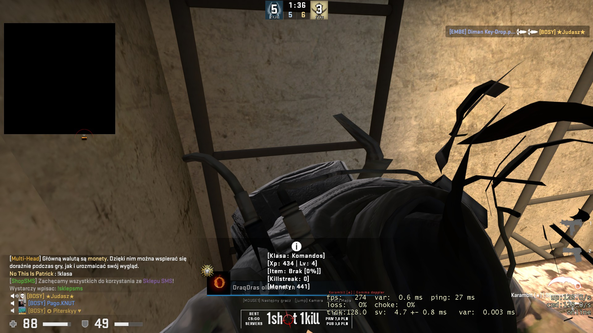 Twój nick podczas grania:★Judasz★ Godzina, data zdarzenia:19:05 25.08.2019r Mapa: Mirage 2x2 czy jakoś tak Link do screenów:Pliki są przypięte na dole STEAM_ID / IP: STEAM_0:1:207938858