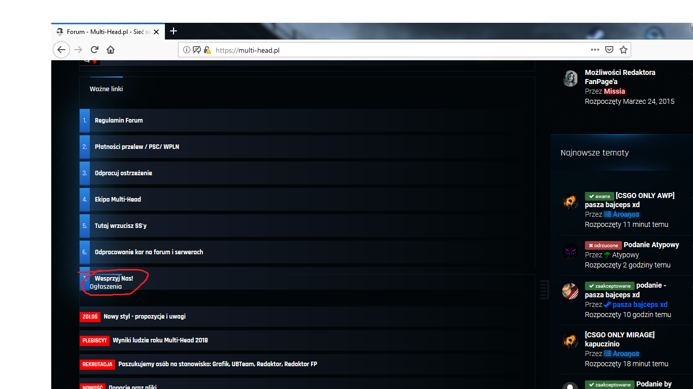 SQNFUN Napisano 20 Stycznia 2019 Udostępnij Napisano 20 Stycznia 2019 Zamknijcie możliwość zakładania tematów w dziale rekrutacji ts3 to raz, a dwa to zmieńcie kolor donatora, nie wiem który był taki mądry i zmienił kolor tej rangi na jakiś pedalski... Odnośnik do komentarza Udostępnij na innych stronach More sharing options...